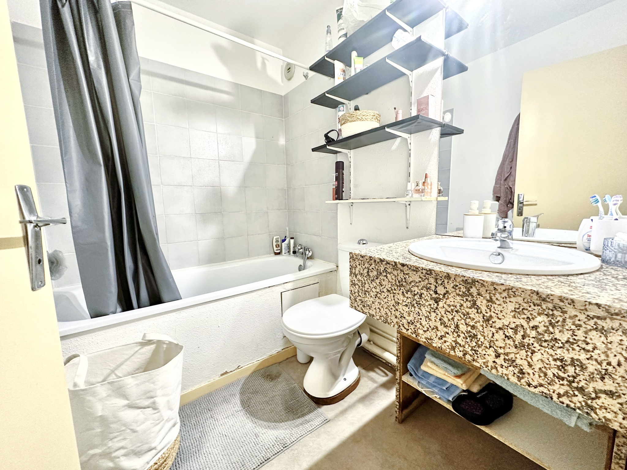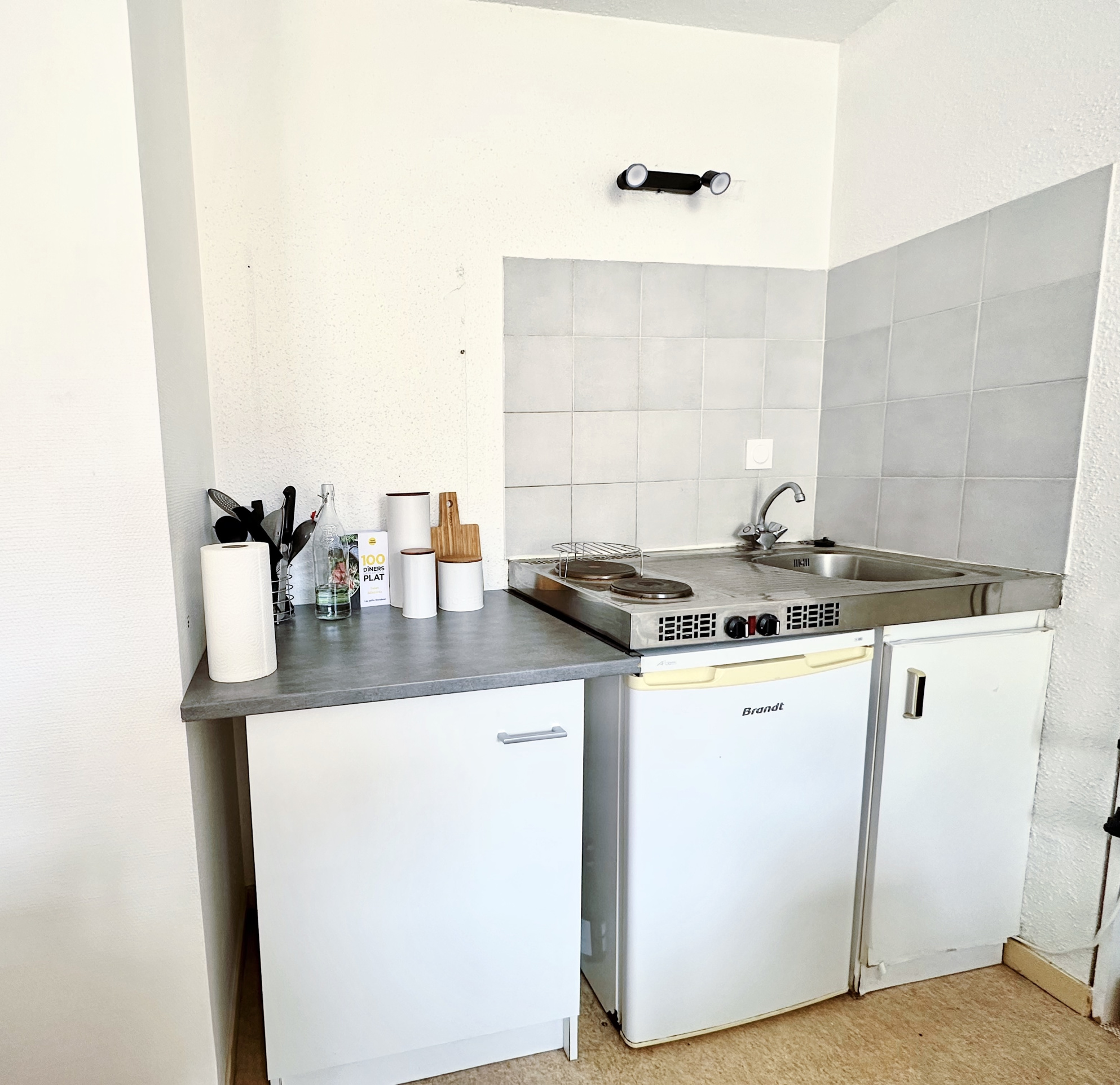 Toulouse Hyper Centre, quartier Jean Jaurès, Rue des Sept Troubadours, 5 min à pied de la station de métro Jean Jaurès (lignes A et B), proche de commerces divers, au 2ième étage sur 3 d'un petit immeuble sécurisé, T1 non meublé lumineux non meublé de 23,75 m2 comportant une entrée avec rangement, un séjour avec étagères ouvert sur une kitchenette équipée (plaque électrique 2 feux, frigo, branchement MAL), une salle de bain avec meuble sous vasque et WC. Disponible le 31/01/2026.