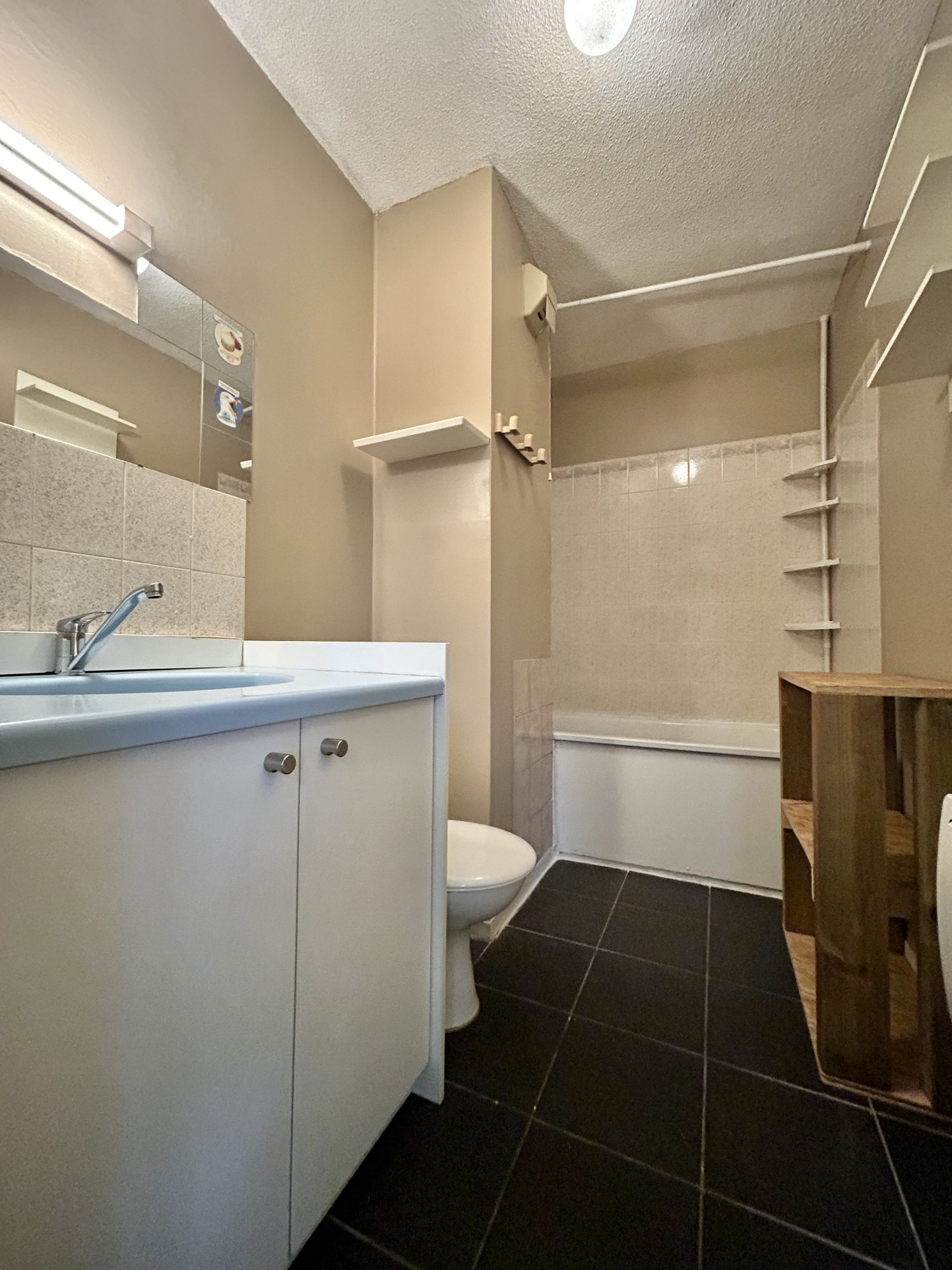 Toulouse, Quartier Sept Deniers, proche du stade de rugby Ernest Walon, dans une résidence sécurisée et verdoyante de petits bâtiments de 3 étages, au rez-de-jardin d'un de ces batiments, appartement T1 de 28.40 m2 avec double vitrage comportant une entrée avec placard, une pièce principale avec une cuisine équipée et aménagée (réfrigérateur, plaques 2 feux, branchement MAL) donnant sur une terrasse de 25 m2 au coeur de la résidence offrant un cadre de vie calme et verdoyant, un coin nuit astucieusement aménagé sur une estrade avec tiroirs de rangement pouvant accueillir un matelas en 140x190 cm et pouvant être séparé de la pièce principale par un rideau (la tringle est déjà installée), une salle bain avec meuble sous vasque et WC. Une place de parking aérienne. Disponible le 31/01/2026.